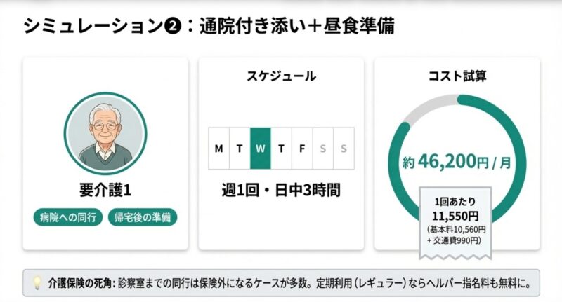 シミュレーション❷ 週1回・日中3時間「通院付き添い+昼食準備」