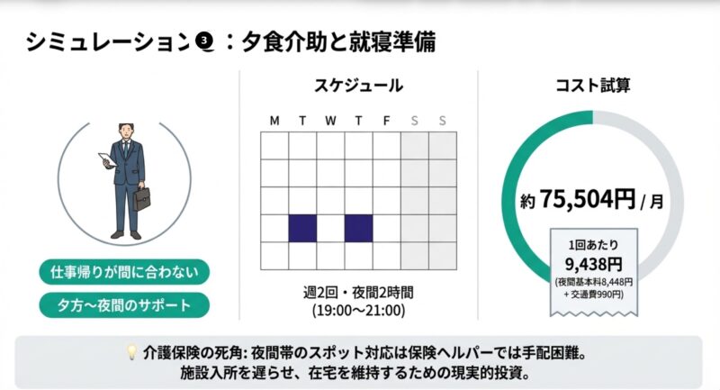 シミュレーション❸ 週2回・夜間2時間「夕食介助と就寝準備」