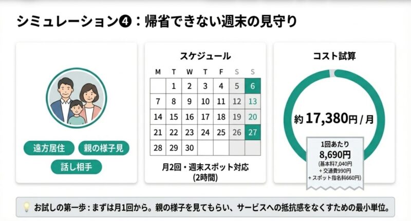 シミュレーション❹ 月1〜2回・スポット「帰省できない週末の見守り」